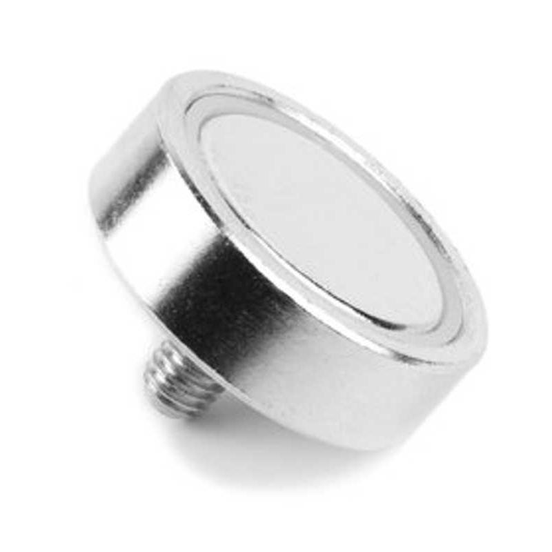 Magnete al neodimio d. 25 con base in acciaio e filetto M5.
