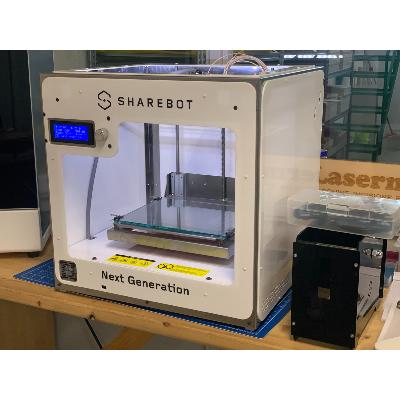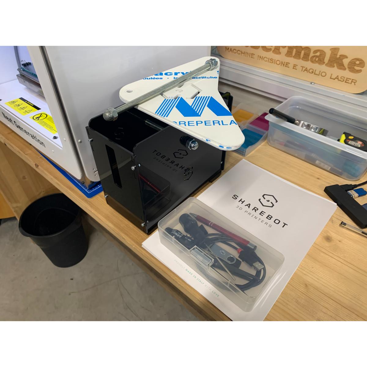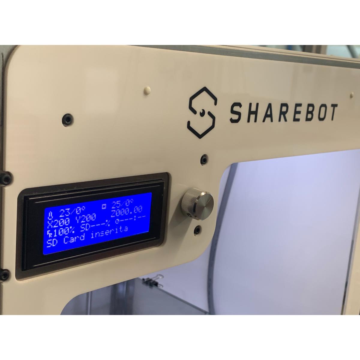 Sharebot NG è una stampante 3D che utilizza la tecnologia di stampa 3D FFF (Fused Filament Fabrication), ovvero la deposizione di un filamento termoplastico su piano di stampa: aggiungendo un layer alla volta, la macchina crea il modello o il prototipo funzionale.