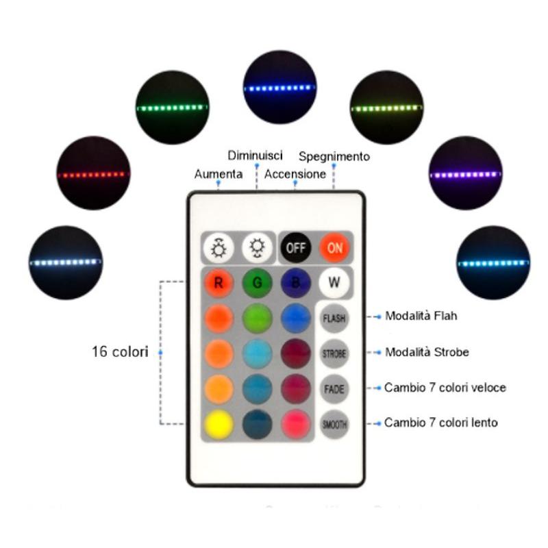 Telecomando con diversi giochi di luce e impostazioni di luminosità.