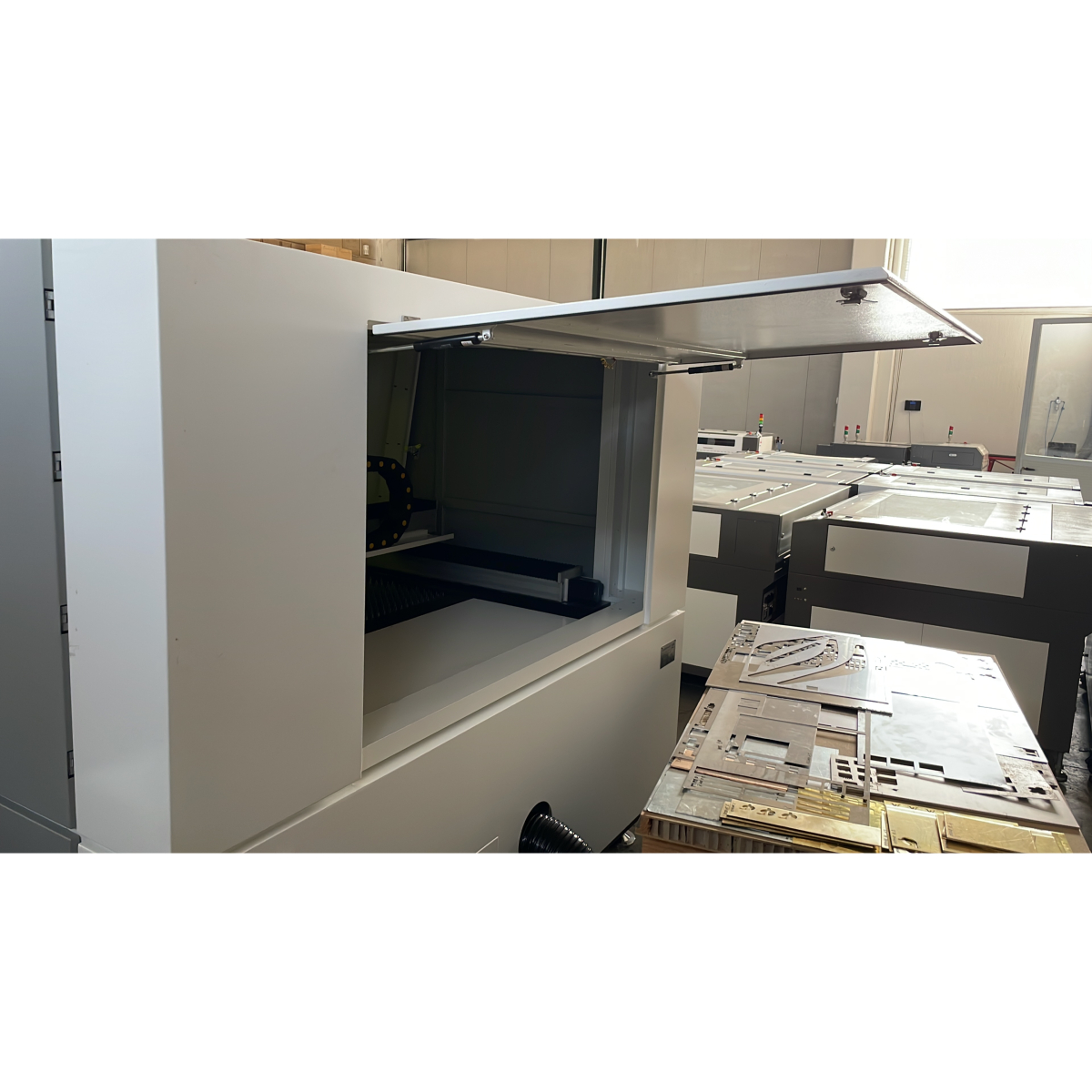 Disponibile con potenze da 1000 - 1500 - 2000 W per lavorazione su lamiere spesse fino a 20 mm. formato max.1300 x 1300 mm.