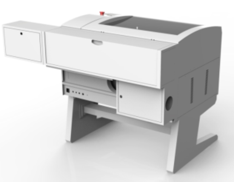 Macchina per incisione e taglio laser CO2 a plotter da banco.