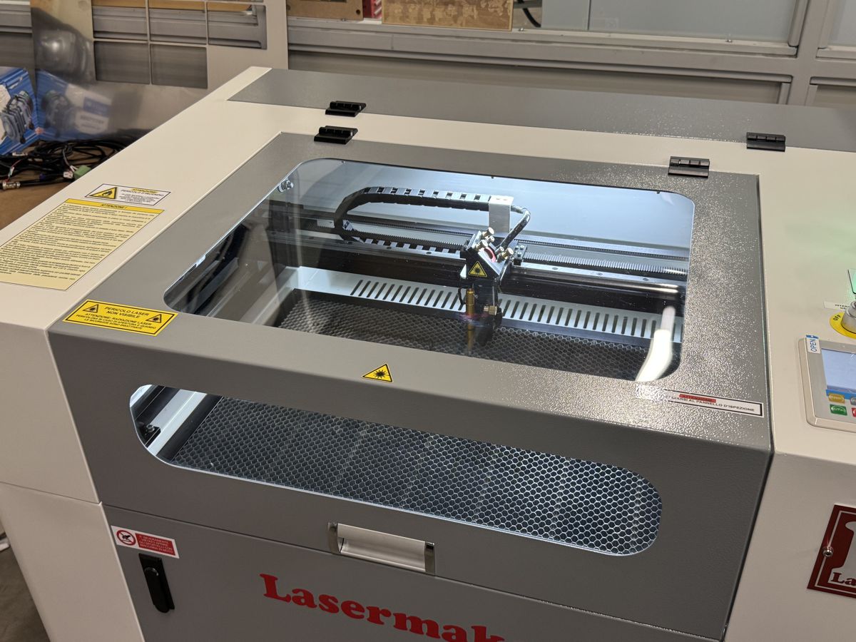 Macchina per incisione e taglio laser CO2 a plotter carrellata.